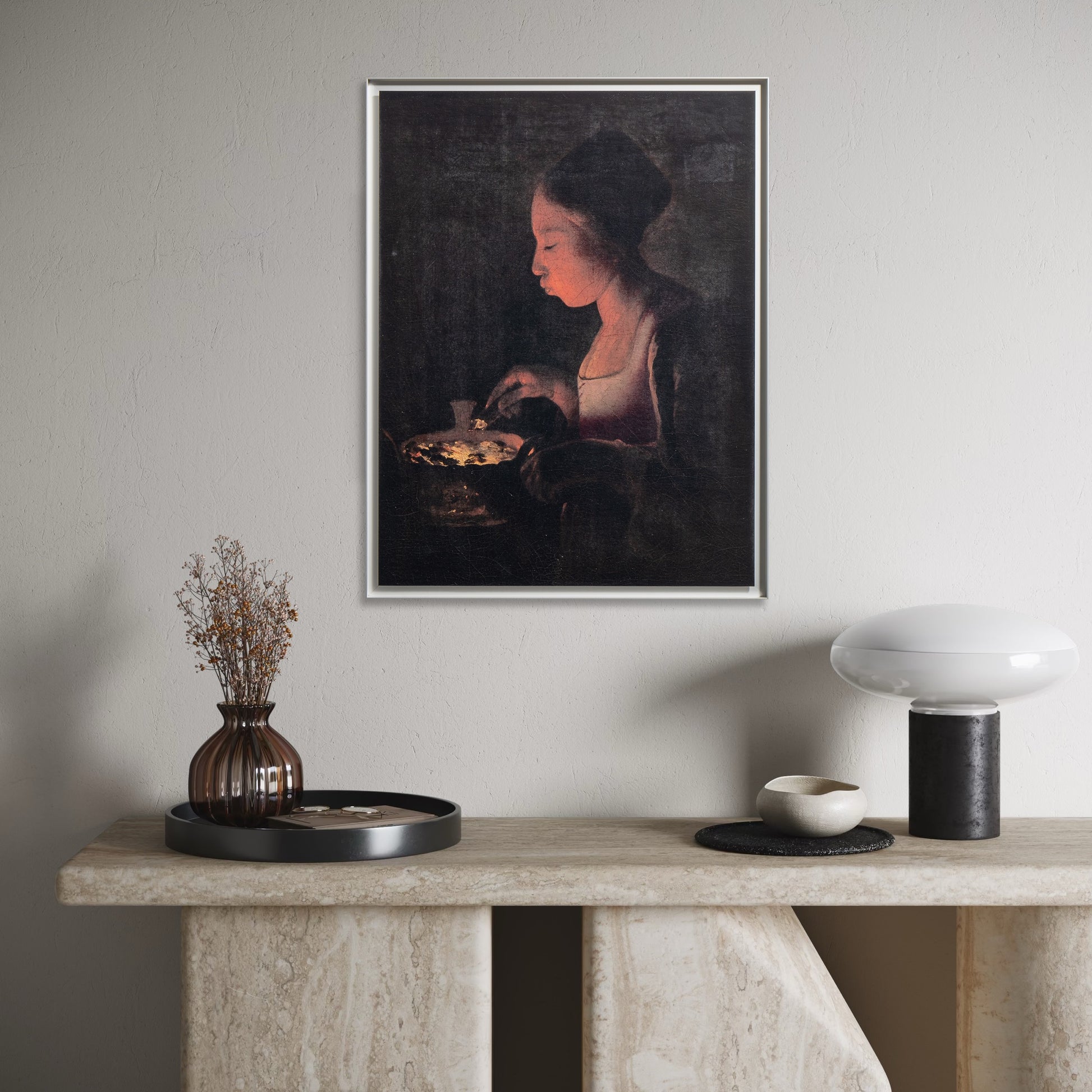 With its serene atmosphere and timeless intimacy, A Girl Blowing on a Brazier brings a sense of calm, depth, and quiet poetry to any interior, enriching both classic and contemporary spaces.